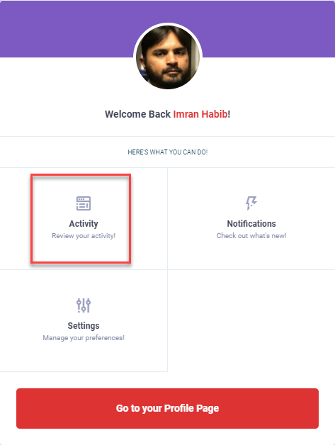 To see what you have shared in the community sofar, click on the Activity option.